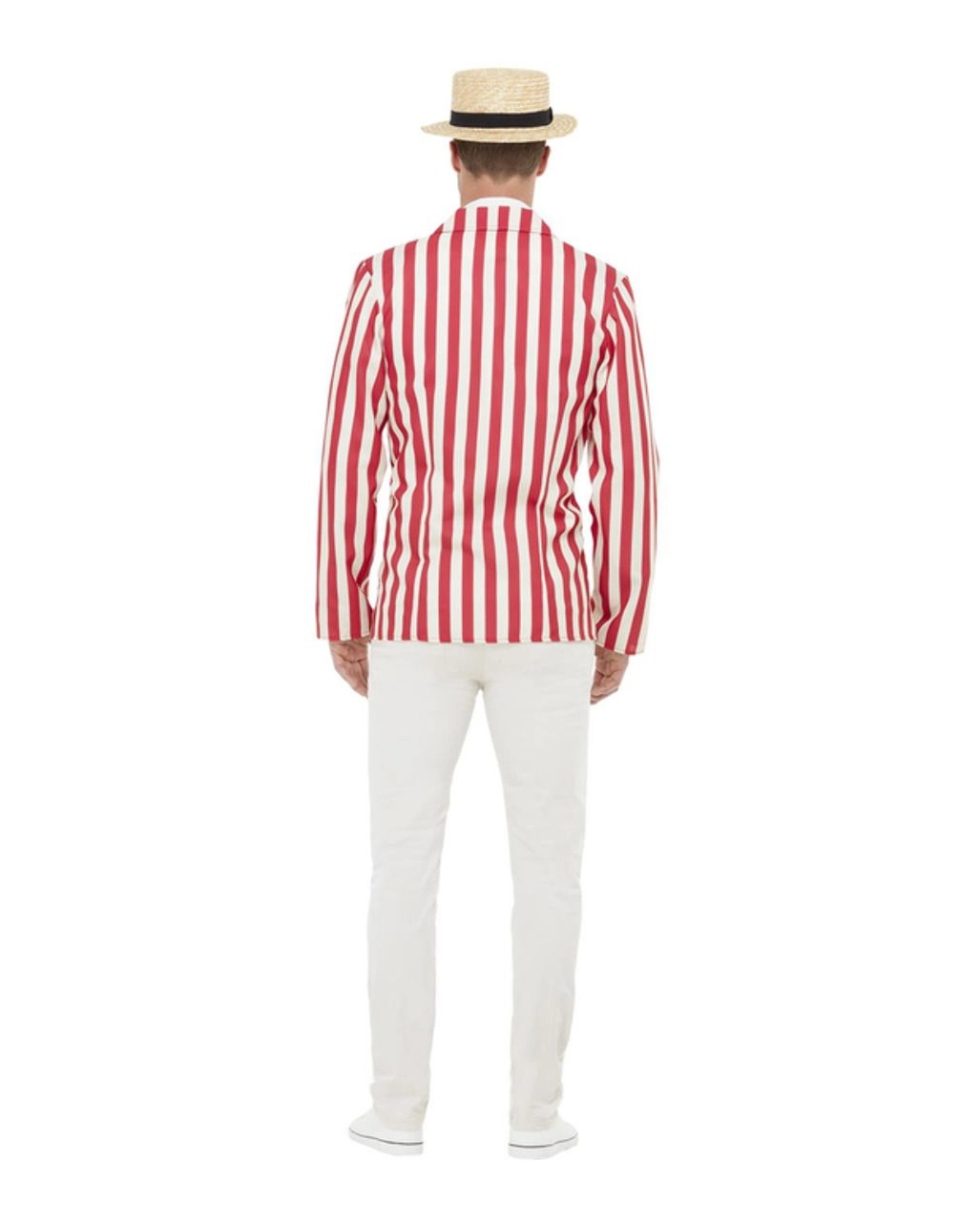 Das 20er Jahre Retro Barbershop Kostüm für Erwachsene sorgt für einen gelungenen Auftritt. Die Jacke im rot-weiß gestreiften Muster fällt durch ihre fröhliche Optik auf. Sie wird mit drei roten Knöpfen zugenköpft. Die elegante Fliege gehört zu einem echten Gentleman natürlich dazu. Zu guter Letzt setzt du noch den Hut auf, der dir den Look eines Dandys verleiht. Passend dazu empfehlen wir den Selbstklebender Zwirbelbart blond meliert oder eines unserer vielen anderen 20s Kostüm Accessoires.
