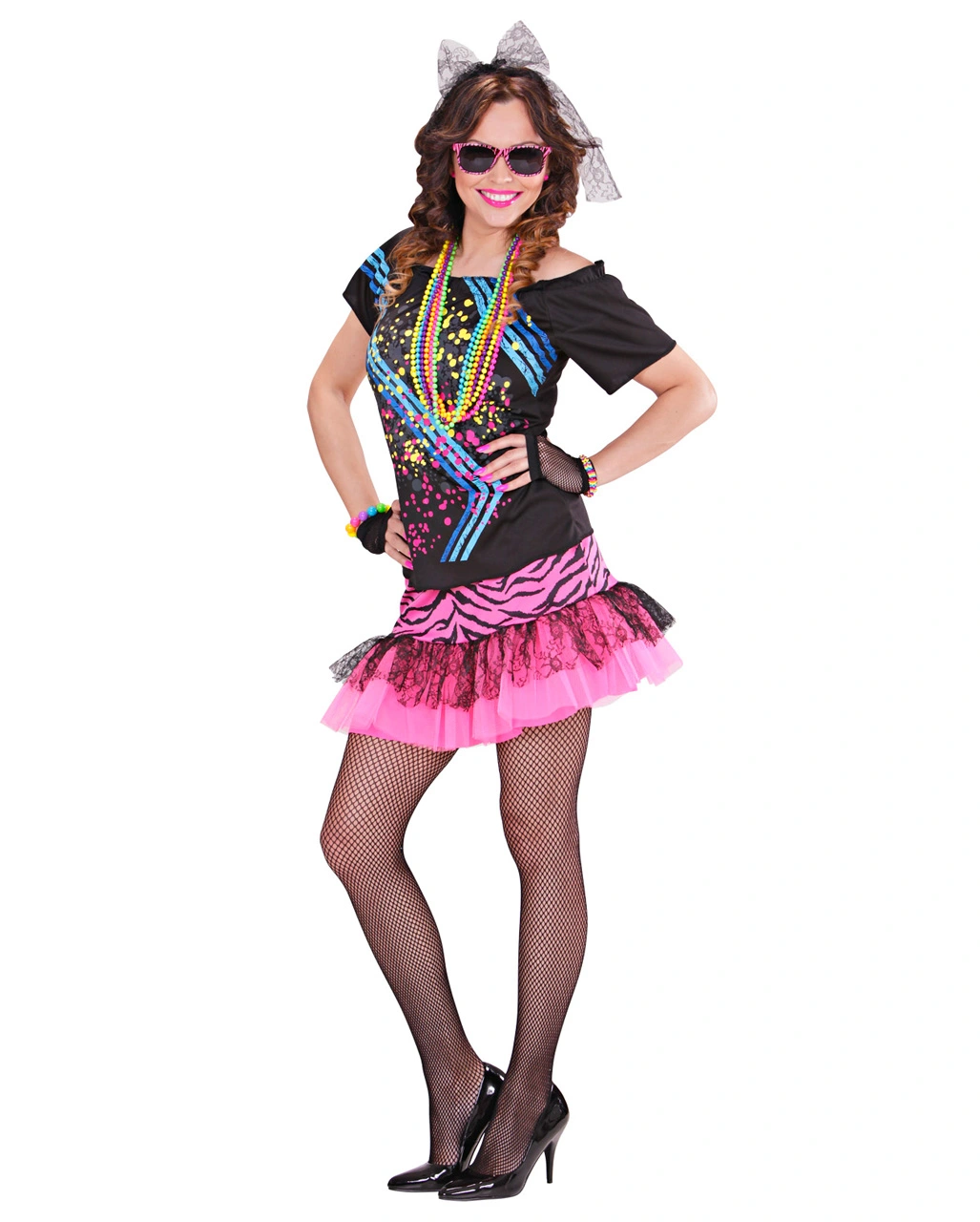 Neonfarbiges 80ies Minikleid für Fans von Madonna & Cyndi Lauper