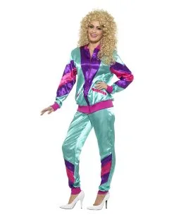 Unser 80s Jogginganzug Kostüm für Damen ist die perfekte Verkleidung für die nächste Geburtstagsparty unter dem Motto „Back to the 80s“ & die Bad Taste Party. Verkleide dich im 80er Jahre Style mit unserem bequemen bunten Trainings-Anzug und zeige, dass sich nicht nur Männer in dem Proleten Look zeigen können.