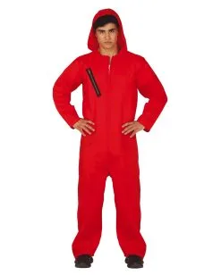 Sichere dir unseren Bankräuber Overall Rot als Faschingskostüm. Die Verkleidung ist in S-L Größe erhältlich und überzeugt mit einer hohen Qualität. Ein Reißverschluss an der Brust sowie eine Kapuze befinden sich ebenfalls am roten Kostüm-Overall. Entdecke auch unseren Haus des Geldes Kostüm Overall