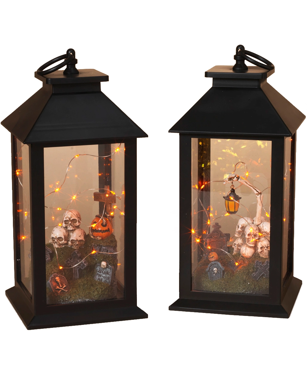 Beleuchtete Halloween Laterne Friedhof Szenario