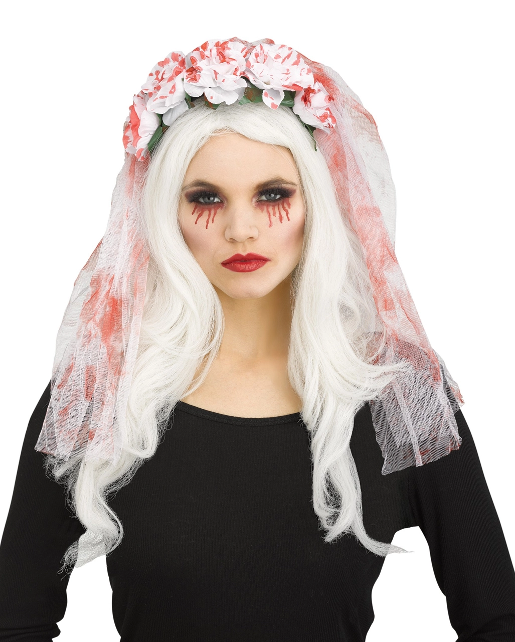- Horror Braut Kopfschmuck mit blutverschmierten Rosen