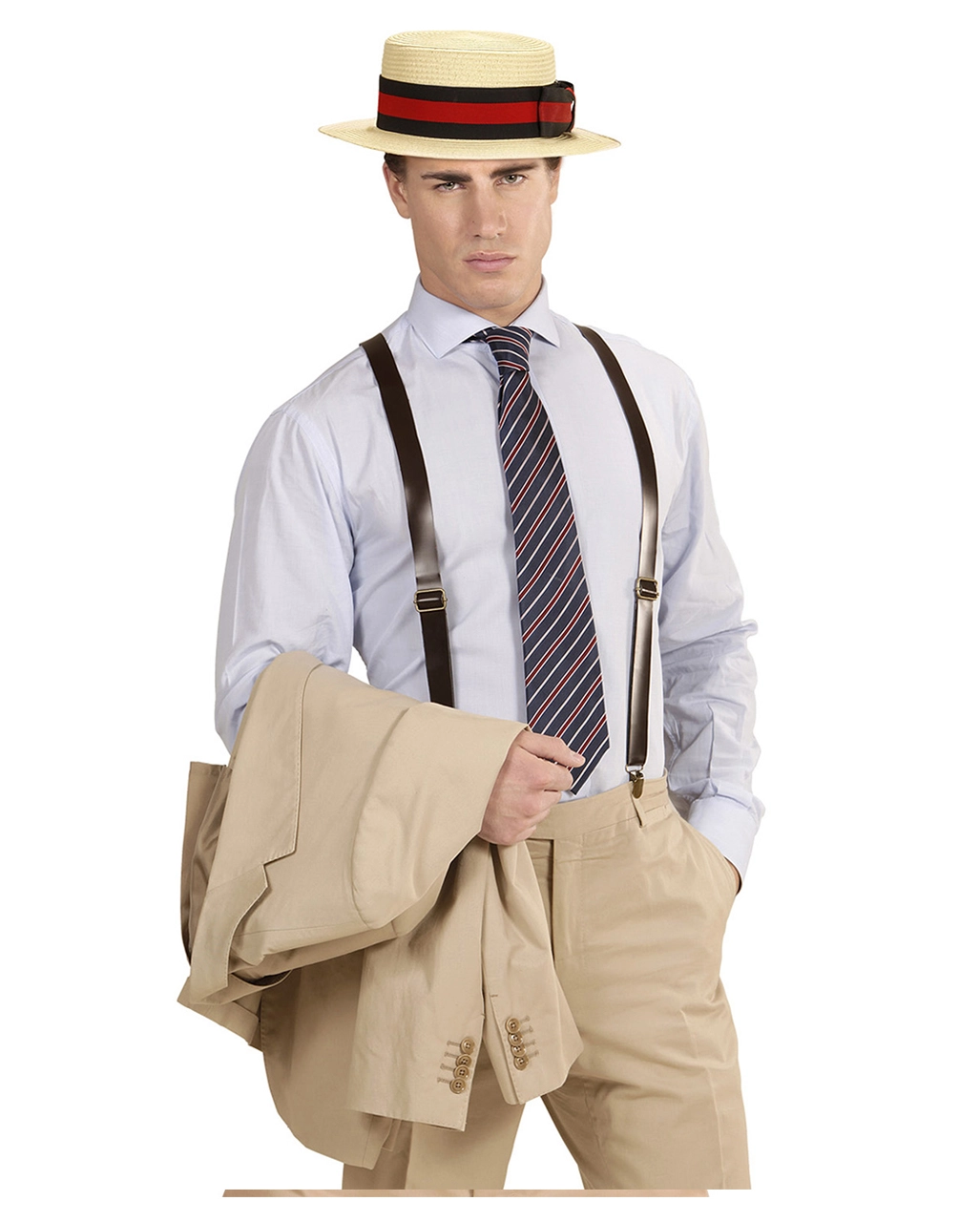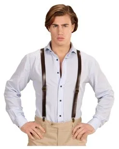 Braune Hosenträger in Lederoptik passen zu Gentleman Kostümen, Vintage Outfits oder auch zu Trachten-Kostümen. Auch im Alltag begegnet man diesem Mode Accessoire wieder häufiger, da sie bei Frauen als auch bei Männern voll im Trend liegen und sich viele Outfits mit ihnen kombinieren lassen. Dieses Kostümzubehör sieht nicht nur elegant aus, es unterstreicht auch dein Kostüm und verleiht ihm eine gewisse Eleganz. Trage Braune Hosenträger in Lederoptik und hinterlasse Eindruck!