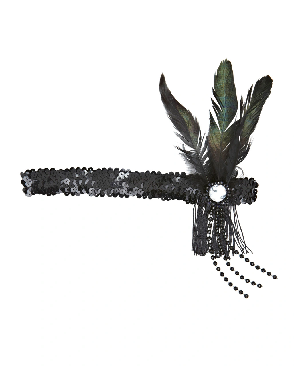 Lieferummfang: 1x Flapper Stirnband Schwarz mit schwarzer Feder