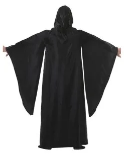 Das nachtschwarze Gevatter Tod Kostüm ist eine lange Robe mit einer spitz zulaufenden Kapuze. Unter dieser kannst du ein Gesicht hinter einer Skull Schaumlatex Maske verbergen. Die überweiten Ärmel der Verkleidung, perfekt um die Seelen der Verstorbenen zwischenzulagern, reichen beinahe bis zum Saum des Gewandes. Als Gevatter Tod verkleidet darf natürlich eine Grim Reaper Sense nicht fehlen, wenn man an Halloween zu später Stunde von Party zu Party spaziert.