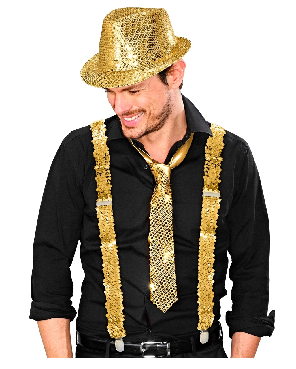 Lieferumfang: 1 x Goldene Pailletten Hosenträger