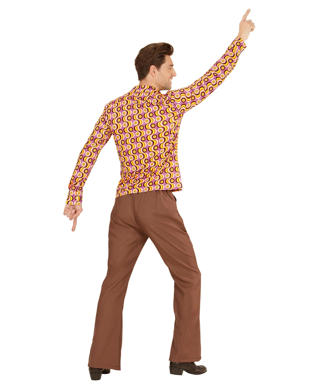 Das Groovy 70er Hemd Discs ist in den Größen S/M, L/XL, XXL verfügbar. Es besteht aus weichem Stoff mit schrillem 70er Jahre Vintage Muster. Ein breiter Kragen verleiht dem 70er Jahre Kostüm eine lässige Coolness. Das Retro-Hemd ist im buntem Tapeten-Muster-Look designet, welcher in den 70ern absolut im Trend war. Trage hierzu die coole Groovy 70er Herren-Schlaghose Braun.