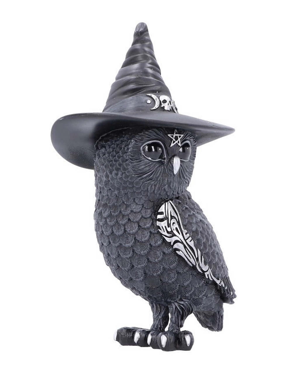 Die Halloween-Eule mit Hexenhut ist als Tischdeko ein echter Blickfang. Ob zur Walpurgisnacht oder zu Halloween, die Hexen Deko ist liebevoll gestaltet. Sie zeigt deine Liebe zur magischen Welt. Stelle die Eulen Deko Figur gut sichtbar auf den Tisch oder ins regal. Die Deko-Eule wurde aus hochwertigem Polyresin gegossen und sorgfÀltig handbemalt. Mit diesem Look ist die Halloween Eule mit Hexenhut wahrscheinlich der niedlichste Okkultist, den du bisher gesehen hast. Sie ist mit verschnörkelten Silberdetails und okkulten Symbolen verziert. Zusammen mit unseren vielfÀltigen Katzenfiguren lassen sich so eine ganze Sammlung an Halloween Sammelfiguren ergÀnzen.