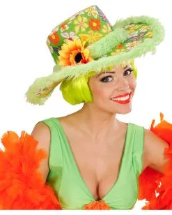 Fröhlicher 70er Jahre Hippie Hut mit Sonnenblume für Fasching & Karneval