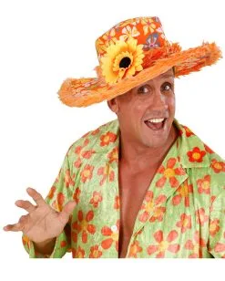 Schriller 70er Jahre Hippie Hut mit Sonnenblume für Fasching & Karneval