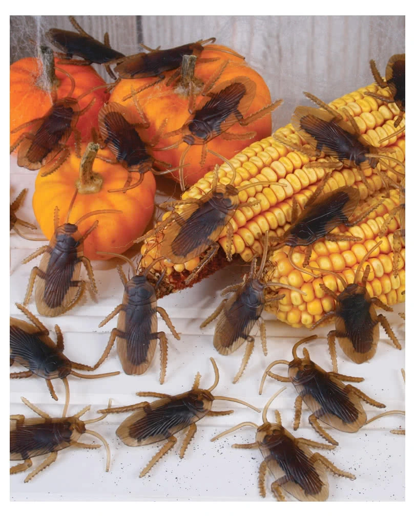 Verwandel deine Halloween Party mit den Kunststoff Küchenschaben in ein wahres Horrorszenario und erschrecke mit den ekligen Kakerlaken deine Partygäste. Diese eignen sich hervorragend, um damit die Küche, das Badezimmer oder den Eingangsbereich damit zu dekorieren. Die 40 Stück braunen Kakerlaken aus Kunststoff, sind ein toller Deko- und Scherzartikel für die ganze Familie.