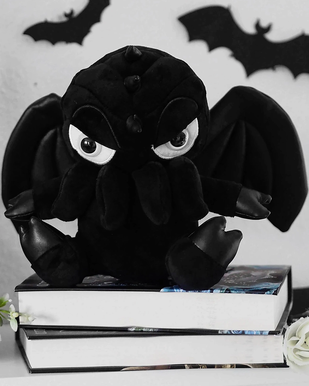 Die Ausgeburt aus den Tiefen des Abgrunds oder das niedlichste kosmische Wesen, das dir je begegnet ist: Das KILLSTAR Baby Cthulhu Kuscheltier ist etwa 22,5 cm groß und mit weichem Plüschfell zum Knuddeln ausgestattet. Natürlich hat das Plüschtier pechschwarze Gesichtszüge, Flügeln und Hörner aus Kunstleder. Es schaut dich außerdem ganz lieb aus silbernen Mondaugen an. Perfekt zum Verschenken – oder am besten für dich selbst!