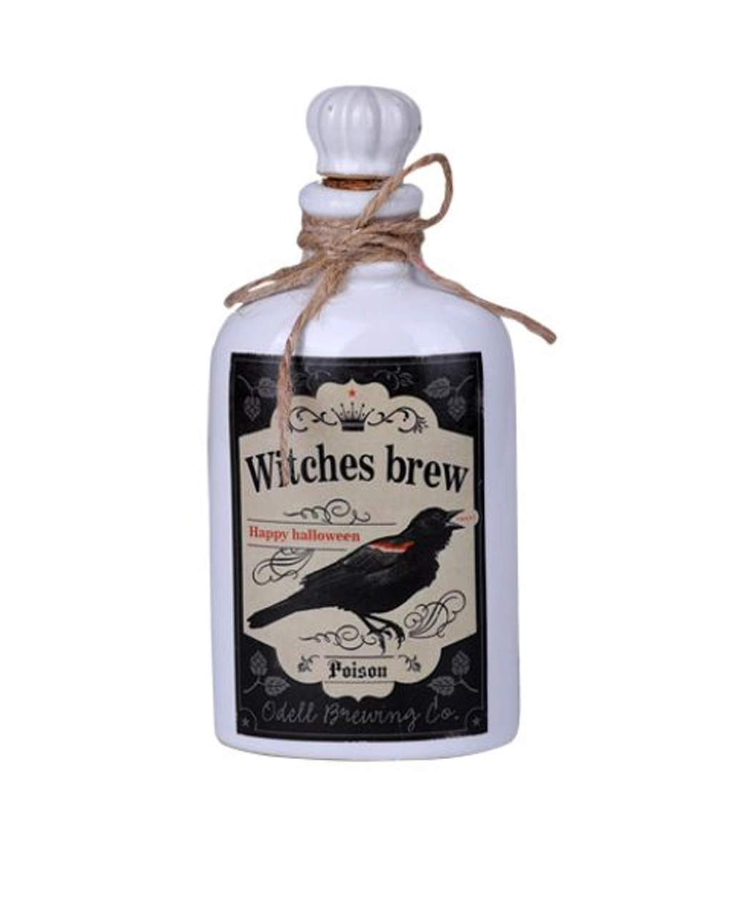 Die kleine Hexentrank Gift Flasche ist nicht befüllt und dient ausschließlich zu Dekozwecken. Der weiße Keramik-Flacon ist mit einem Vintage Label mit Krähe gestaltet und wirkt sehr eindrucksvoll. Der Flaschenhals ist mit einer dekorativen Juteschnur umwickelt. Entdecke weitere fantastische Deko Gift-Flacons wie die Kleine Spinnen Gift Flasche