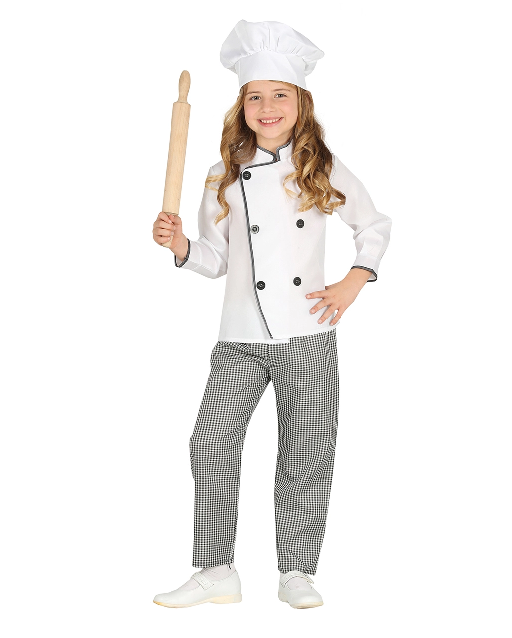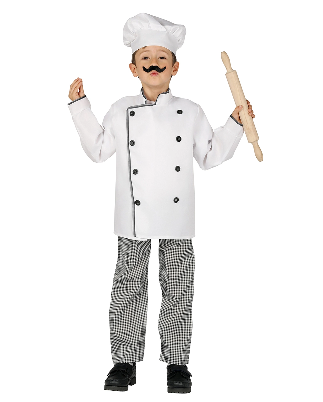 Das liebevoll verarbeitete Koch Kinderkostüm besteht aus drei Teilen. Die schwarz-weiß karierte Hose kleidet dabei die Beine des kleinen Sternekochs. Und oben herum begeistert die stilechte Jacke mit den schwarzen Knöpfen. Auf dem Kopf darf natürlich auch die typische Mütze nicht fehlen, die in jedem Fall ein echtes Highlight des Kostüm-Sets Koch Kinderkostüm darstellt. Das Kostüm ist in verschiedenen Größen erhältlich. Für das echte Spiel als Koch wäre auch ein Gelbes Gummi Huhn ca. 53cm lustig.