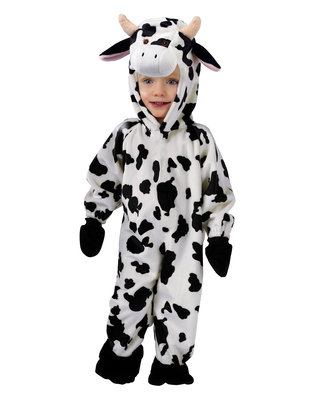 Hier hast du einen Taler, geh auf den Markt, kauf dir eine Kuh, und ein Kälbchen dazu, das Kälbchen hat ein Schwänzchen – didldidldänzchen. Dieser Kinderreim dürfte vielen noch bekannt sein. Das kuschlig, weiche Kinderkostüm einer Kuh ist eine niedliche Verkleidung für kalte Halloween oder Karneval Tage.