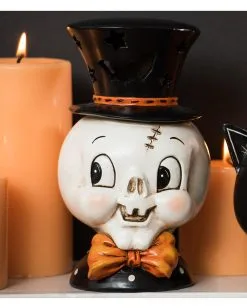 Unser leuchtender Johanna Parker Totenkopf mit Hut ist eine niedliche Tischdeko für alle Halloween Fans. Der kleine Totenschädel ist bester Laune. Er strahlt im wahrsten Sinne des Wortes. Seine kleinen schwarzen Augen blicken schelmisch umher. Ob er gesehen hat, dass die Kinder ihn ebenso niedlich finden wie du? Zurecht. Schließlich hat sich unsere Totenkopf Deko Figur ja auch richtig in Schale geworfen, um mit Fliege und Zylinder als kinderfreundliche Halloween Deko zu begeistern. Auch Retro Deko Fans kommen bei diesem besonderen Knochengesicht voll auf ihre Kosten.