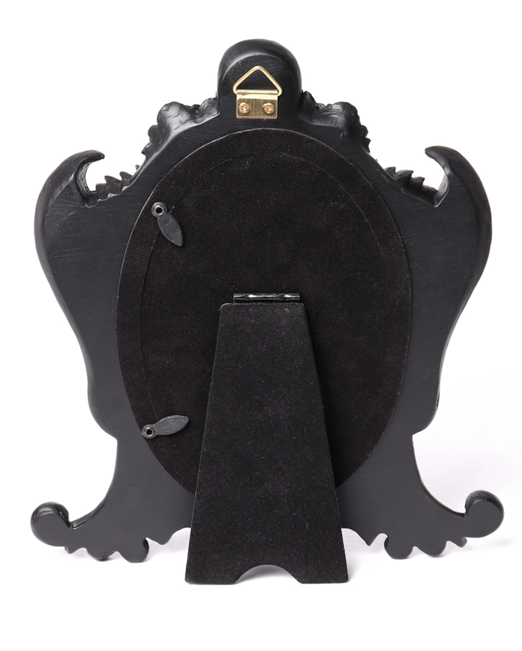 In Anlehnung an den ursprünglichen Gothic-Horror-Stil des 19. Jahrhunderts enthält dieser phantasmagorische Nosferatu Bilderrahmen alle Merkmale, die man von der nächtlichen Behausung eines Vampirs erwartet. Totenschädel, Drachen und Rosen zieren das Schlafgemach des legendären Blutsaugers. Natürlich darf die spitzzahnige Fledermaus nicht fehlen. Mit all diesen düsteren Elementen des Horror-Genres ist unser düsterer Vampir Bilderrahmen eine herrliche Gothic Deko, die deinen liebsten Fotos eine extravagante Umgebung bietet.