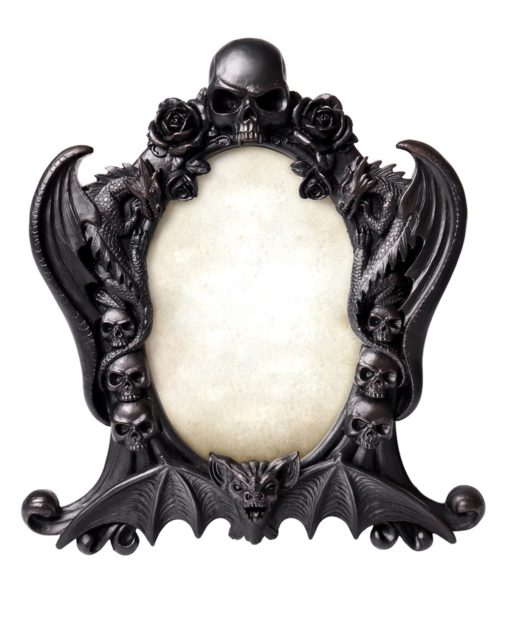 Atemberaubender Gothic Bilderrahmen mit Drachen, Rosen, Totenköpfen & Fledermaus als Motiv
