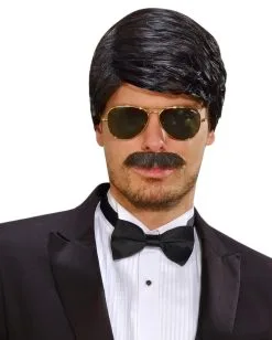 Playboy Herrenperücke mit Schnurrbart Schwarz