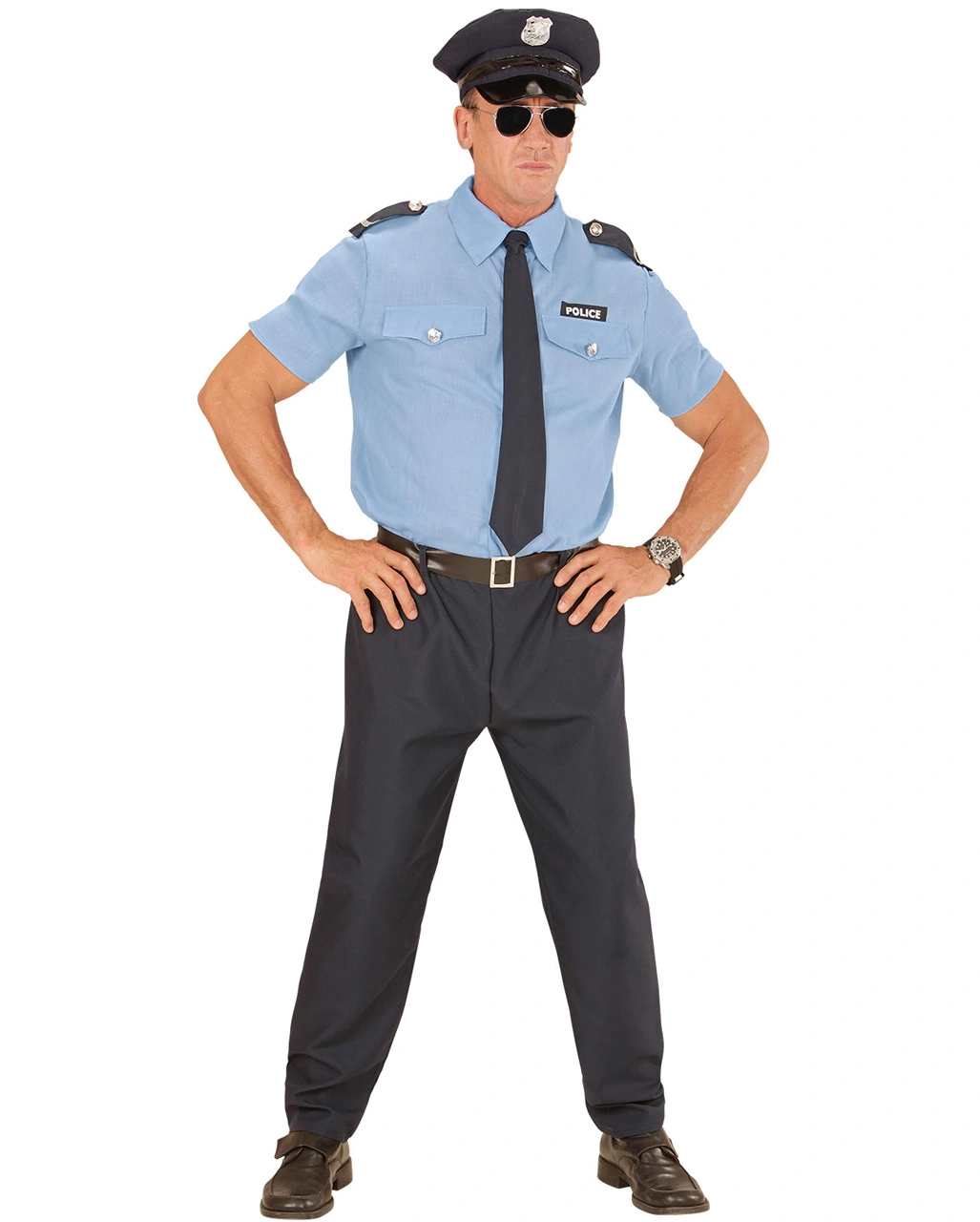 - Inhalt: Polizeihemd, Hose, Gürtel, Polizeimütze