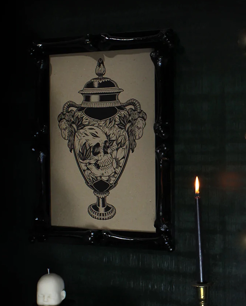 Schwarzer Gothic Bilderrahmen mit Knochen A3