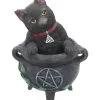 Mystischer Teelichthalter mit Schwarzer Hexenkatze für Halloween & Gothic Fans