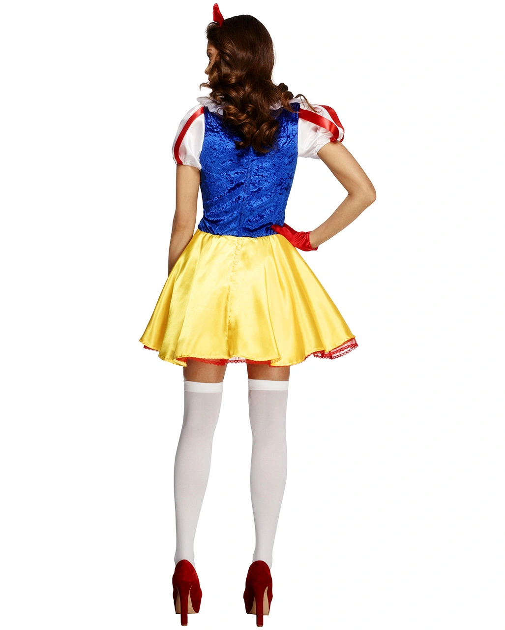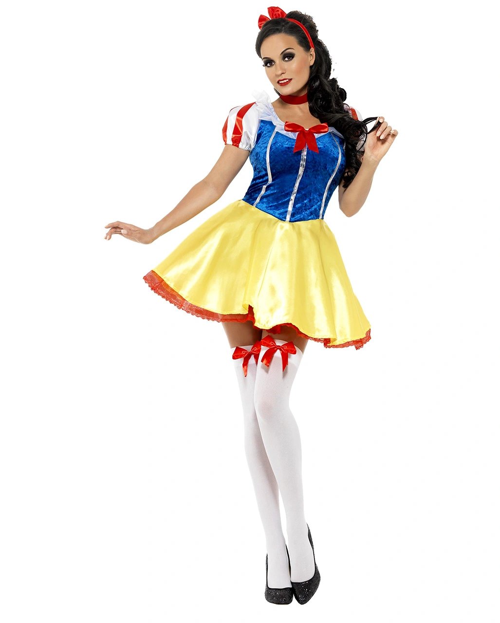 Schneewittchen als süße Unschuld, das war gestern. Schließlich wirst Du mit dem Sexy Schneewittchen Kostüm mit Petticoat dafür sorgen, dass Dir alle Typen zu Füßen liegen. Das Kostüm besteht aus einem toll gearbeiteten Kostümkleid, das zwar die typischen Farben der Disney Prinzessin in Blau und Gelb aufweist, aber zu sexy für brave Mädchen ist. Das blaue Oberteil wurde mit hübscher Spitze am Ausschnitt und einer roten Schleife aufgepeppt. Durch seine Korsagenoptik zaubert das Kleid eine schlanke Taille. Der kurze gelbe Rock lässt viel Beinfreiheit, der Petticoat wippt lässig im Takt, wenn Du Dich als heiße Märchenbraut in den Mittelpunkt tanzt. Der Haarreifen mit der roten Schleife rundet als stilechtes Detail das Gesamtbild der Märchenfigur ab. Passend dazu würden Dir die Weiße Overknees mit Schleife gut stehen.