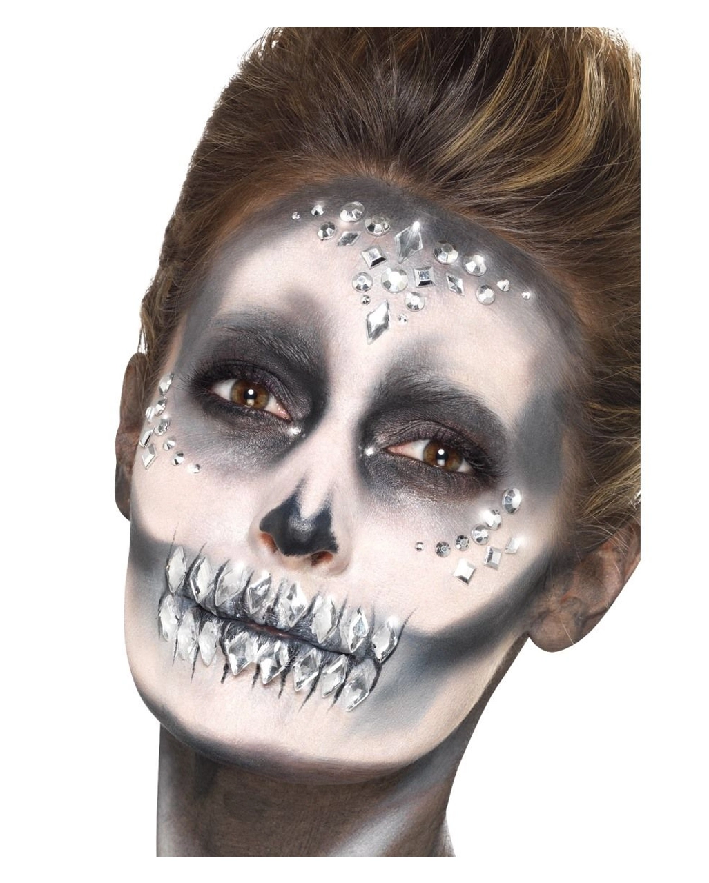 Silberne Edelsteine eckig 100 St. kommen als kleine, selbstklebende Diamanten und schmücken dein Gesicht. Du benötigst keinen zusätzlichen Hautkleber oder ähnliches. Klebe sie einfach an die Stelle, deiner Wahl und bring dein Gesicht mit den eckigen Glitzersteinen zum funkeln. Für einen außergewöhnlichen Effekt kannst du die Gesichts Glitzersteine mit dem Day of the Dead Schmink-Set kombinieren