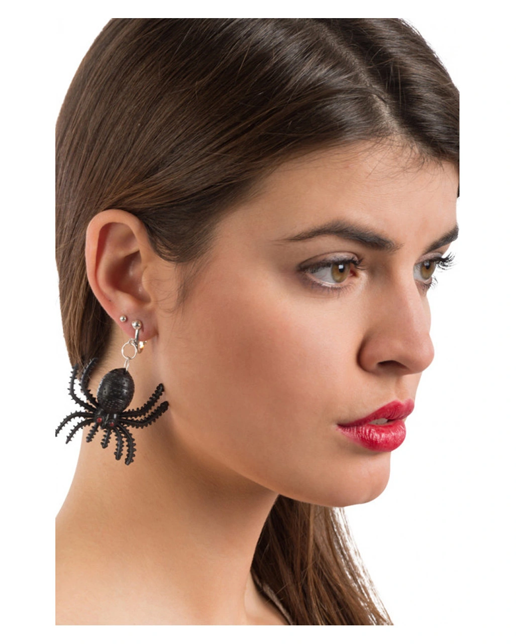 Die Spinnen Ohrringe sind als Clips gearbeitet und daher auch von Halloween-Fans und Karnevals Jecken zu tragen, die keine Ohrlöcher gestochen haben. Die gruseligen Spinnen sind aus Latex.