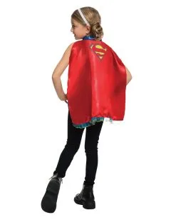 Das Supergirl Maske & Cape Set besteht dem Namen nach aus einer Augenmaske und einem Umhang. Der Umhang ist aus rotem sowie blauem Stoff gefertigt und ein gelber Zierrand führt am Cape entlang. Mitten auf dem Umhang ist ein Supergirl-Logo aus rotem Glitzer-Stoff aufgenäht. Auch die Maske ist mit rotem Glitzer überzogen. Dieses Supergirl Kostümset kann dein Kind hervorragend an Halloween wie auch auf Superhelden-Mottopartys tragen. Damit auch unsere erwachsenen Supergirl und Superman Fans kostümtechnisch nicht zu kurz kommen, haben wir das Supergirl Corsagen Kostüm und Superman Muskelshirt im Programm.