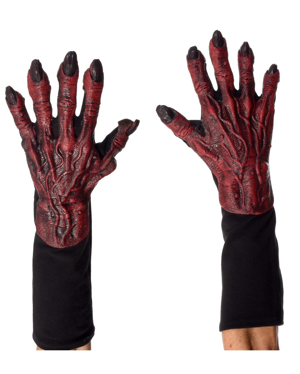 Die schwarzen, ellbogenlangen Stofhandschuhe sind auf der Oberseite mit dunkelroter Latexapplikation der Teufelshänder versehen und machen damit dein Teufelskostüm perfekt. Die Teufelshände Deluxe passen perfekt zu der Teufels Maske Molock und dem Lord Luzifer Deluxe Kostüm , welche du hier bei Horror-Shop.com findest.
