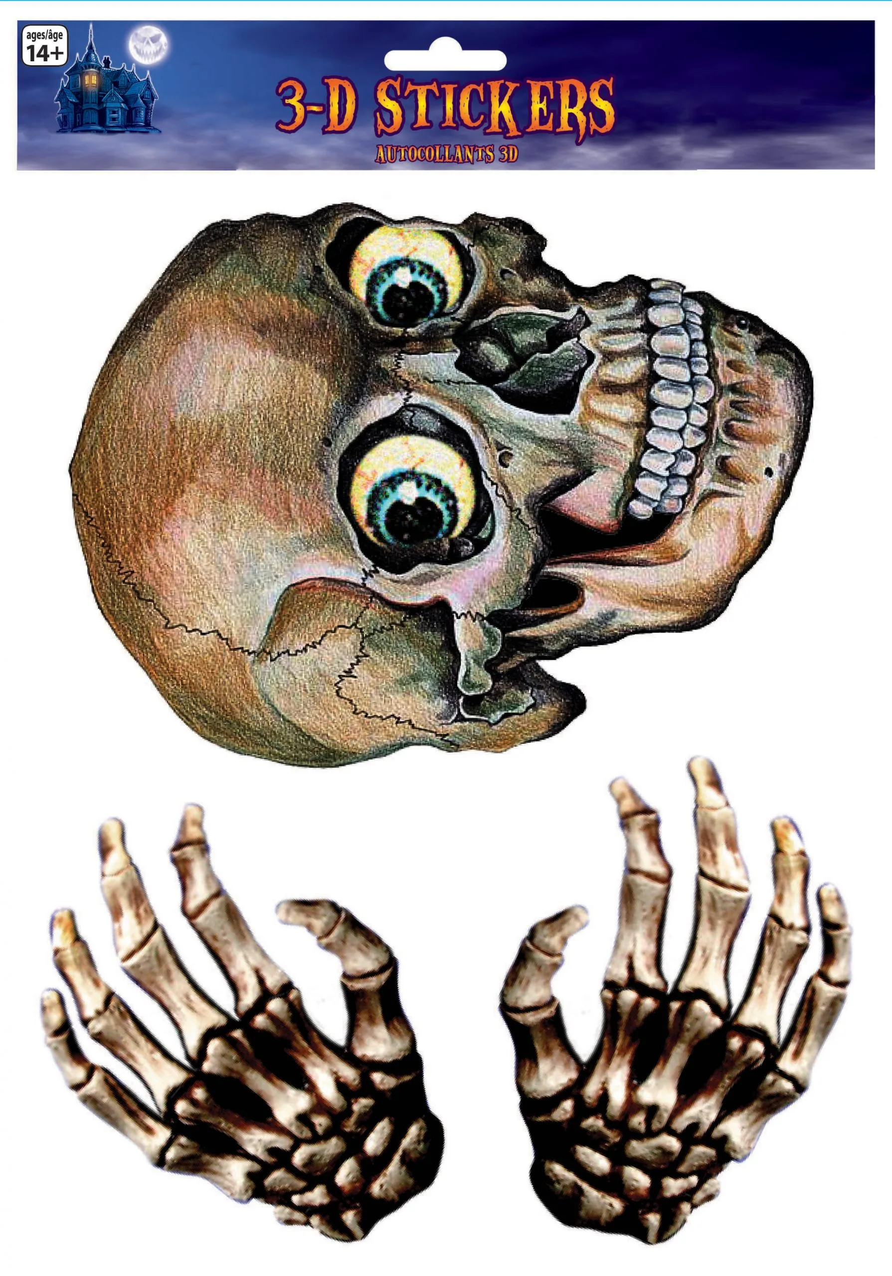 Lieferumfang: 1 x Totenschädel & Skelett Hände Fensterfolie