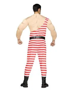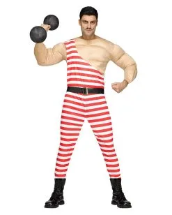 Wer kennt ihn nicht, den starken Mann aus der Manege im gestreiften Anzug mit seiner Kugel-Langhantel?! Mit dem Zirkus Muskelmann Kostüm wirst auch du an Fasching zum perfekten Oldschool Bodybuilder.